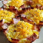Ham and Eggs Cups are a delicious and quick breakfast option, featuring savory ham cups filled with scrambled eggs and topped with melted cheddar cheese.
