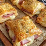 Flaky, buttery puff pastry filled with savory deli ham and rich, melty Gruyère cheese, baked until perfectly golden and crispy. Simple, elegant, and absolutely irresistible — perfect for snacks, brunch, or party appetizers! 🤤🔥