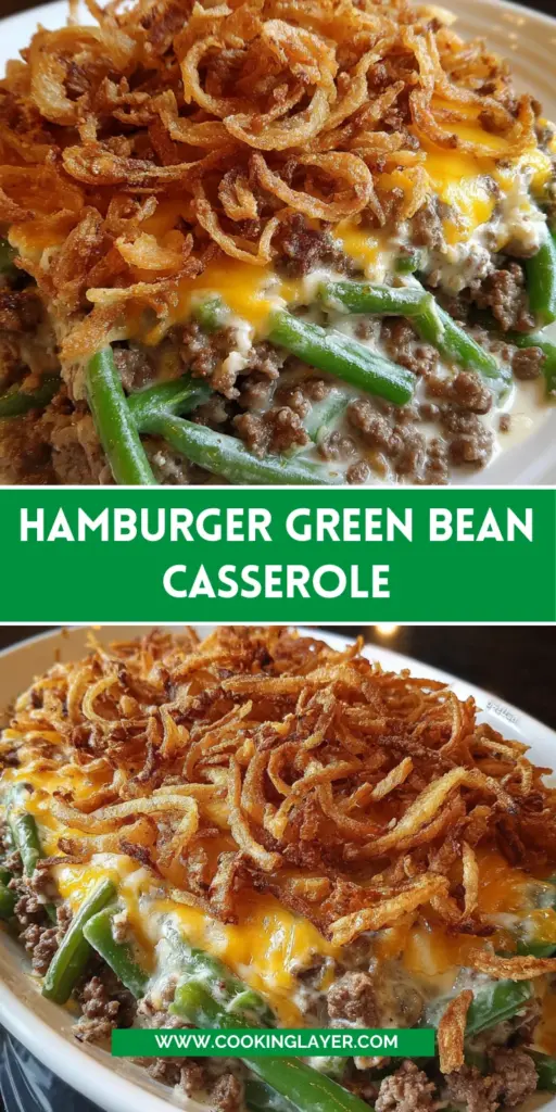 Cooking is such a beautiful way to create memories with our loved ones, and this Hamburger Green Bean Casserole captures that essence perfectly. It’s a dish filled with comforting flavors that brings smiles around the dinner table—outdoor conversations reminiscing about family gatherings and gatherings past. The ease of preparation means busy nights become a little less chaotic, allowing for more precious moments together. Every scoop of that melty cheese and crunchy topping is an expression of love. So, as you gather your family for dinner, let this casserole be part of your culinary adventures, sharing great moments around the table!