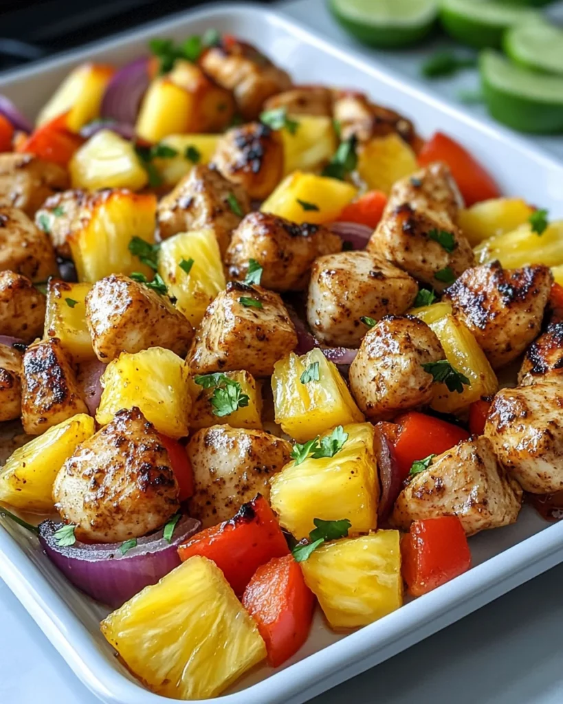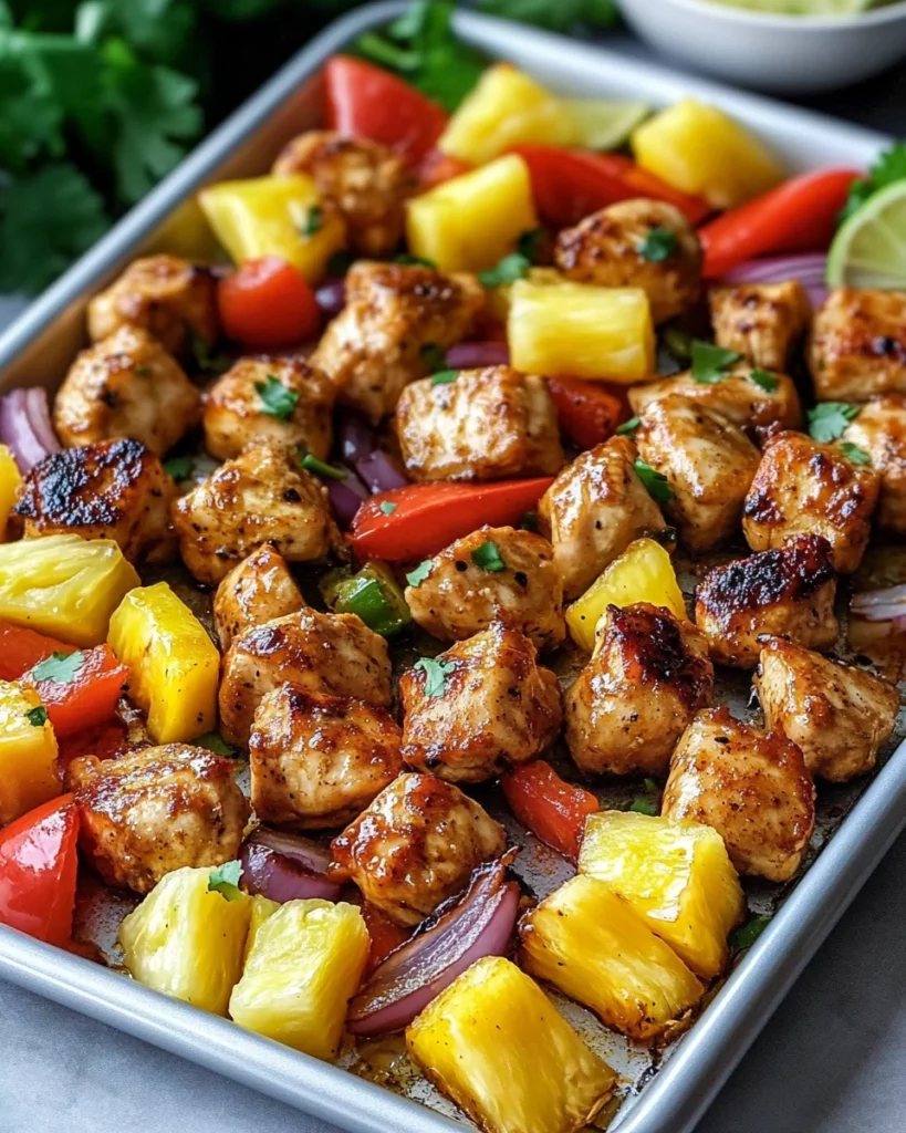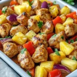 Hawaiian Chicken Sheet Pan is a quick and tasty dinner option featuring chicken, colorful vegetables, and sweet pineapple, all baked together for a delicious one-pan meal.
