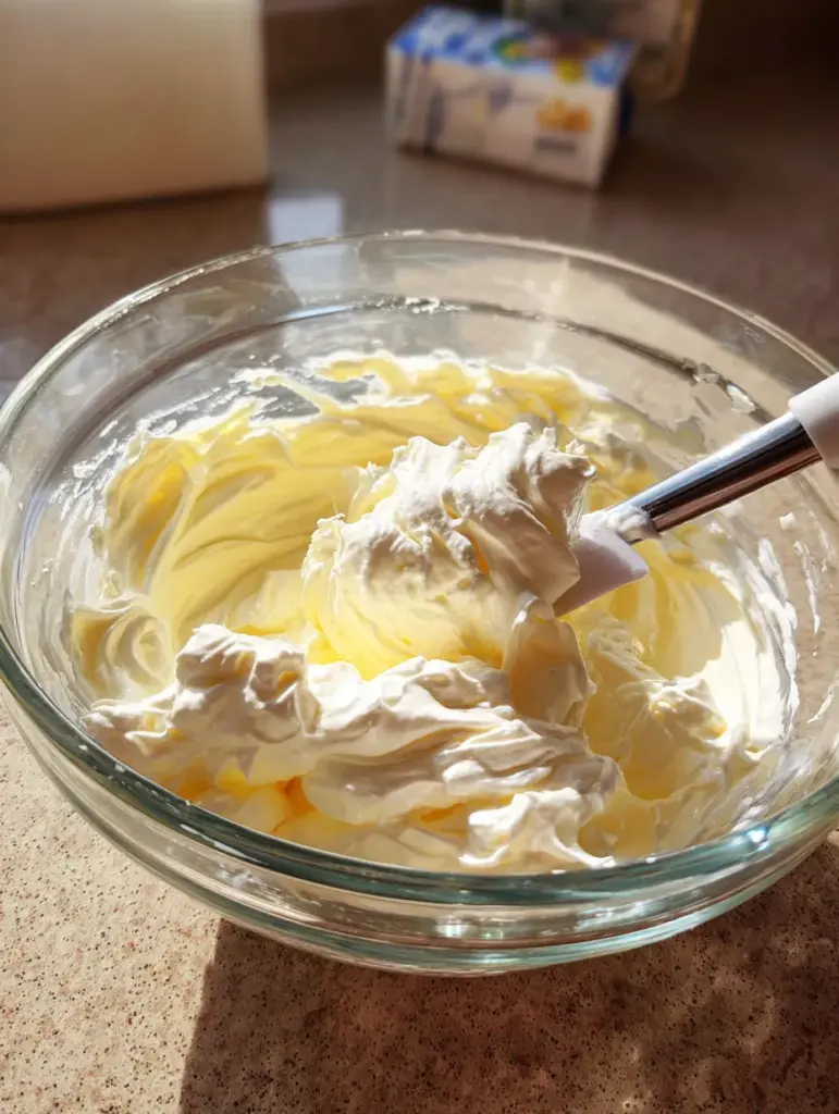 Fold in the Cool Whip gently until the mixture turns creamy and airy. ☁️ (⏱️ 1 minute)