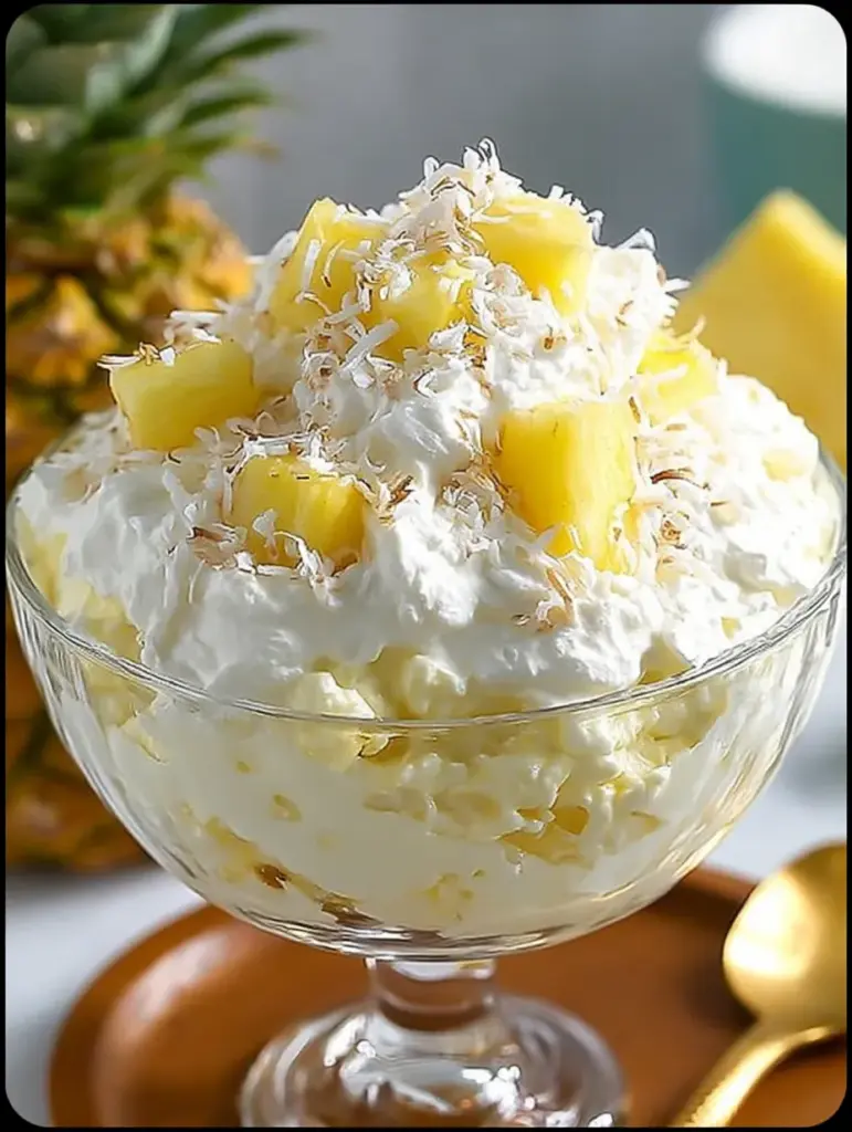 🍍 A silky, tropical cloud of sweetness that feels like a little escape to somewhere warm and sunlit. Every spoonful reminds me of summertime potlucks where the bowls were always licked clean. 🌴✨