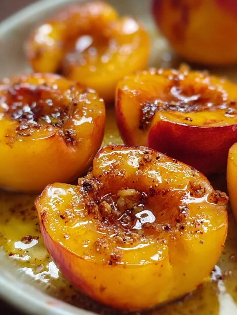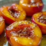 Now, it’s time to drizzle that heavenly mixture over your peach halves. Use a spoon to ensure an even coating. Every bite should be bursting with flavor, so don’t be shy with that honey and spice goodness!