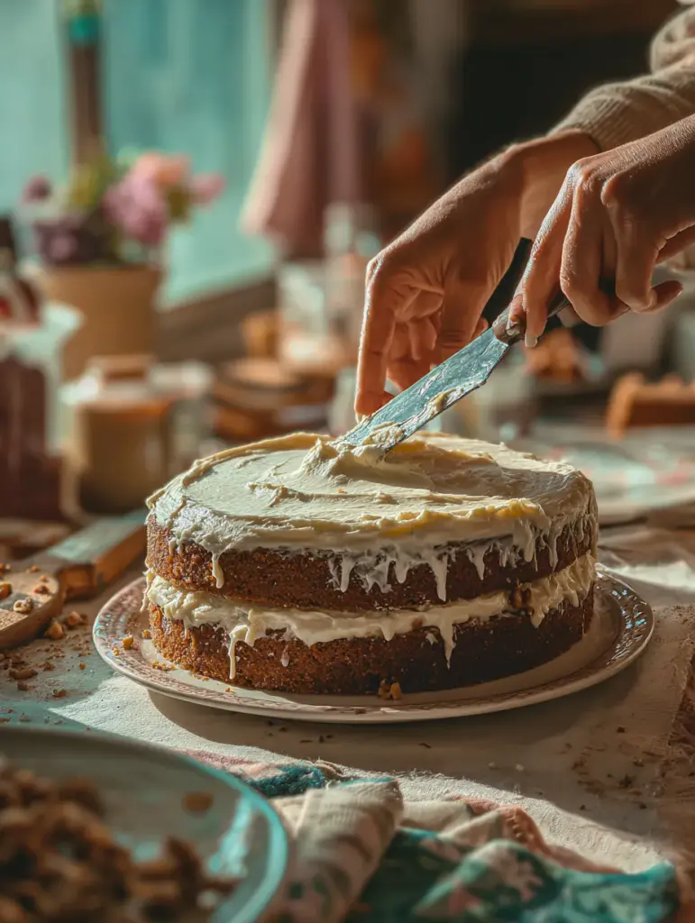 - Coat the entire cake with the remaining frosting — top, sides, and all. Use a spatula to create smooth swirls or rustic peaks (depending on your style).