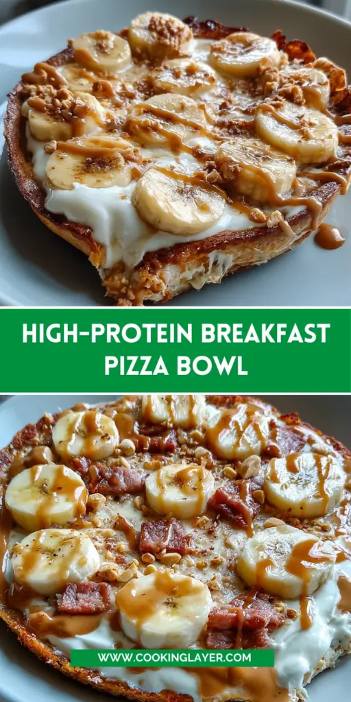 A delicious and nutritious High-Protein Breakfast Pizza Bowl that combines a protein pancake base with Greek yogurt, banana, and peanut butter.