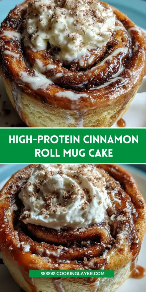 A quick and easy high-protein mug cake that combines the flavors of cinnamon rolls with a healthy twist.