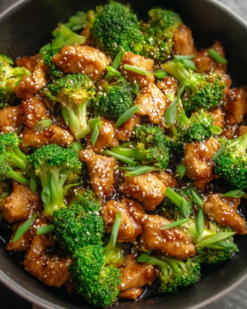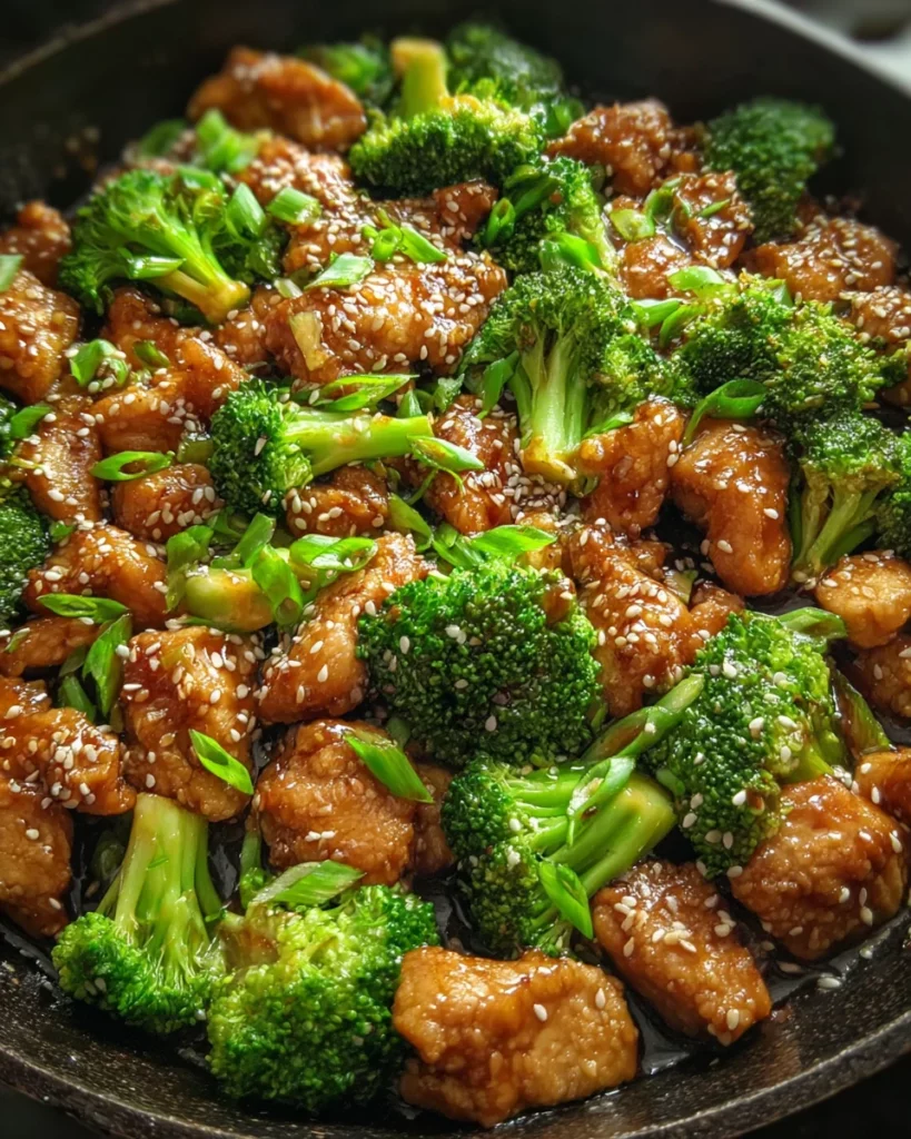 A delicious and healthy meal featuring tender chicken pieces and vibrant broccoli tossed in a sweet and savory honey sesame sauce.
