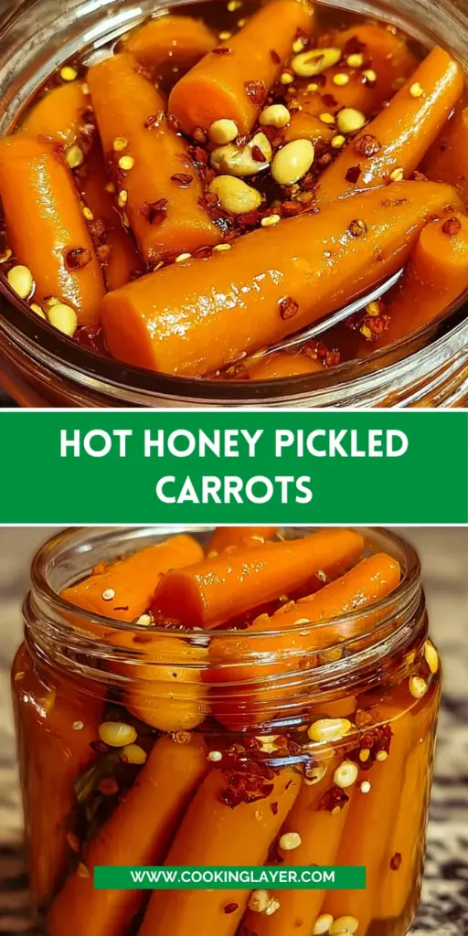 Hot Honey Pickled Carrots are a delicious and tangy condiment infused with a touch of sweetness and heat, perfect for enhancing various dishes.