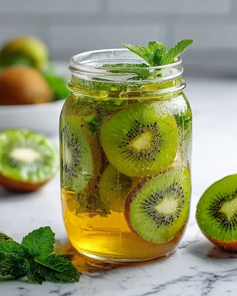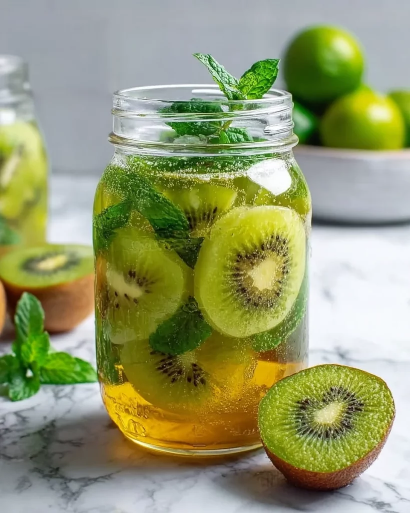 To elevate your drink, garnish each glass with a few fresh mint leaves and a slice of kiwi. Not only does it enhance the look, but it also gives a lovely burst of freshness with every sip. Cheers to summer refreshment!