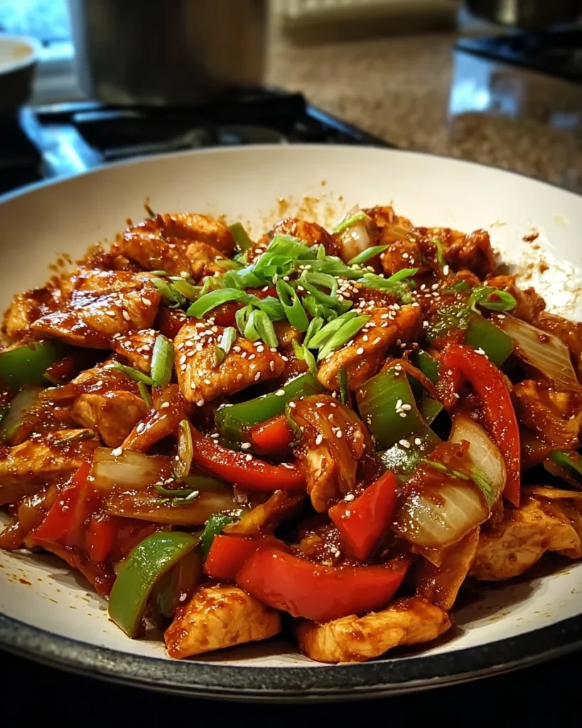 Korean Spicy Chicken Stir Fry is a vibrant and flavorful dish that combines marinated chicken with fresh vegetables and a spicy sauce for a delicious meal.