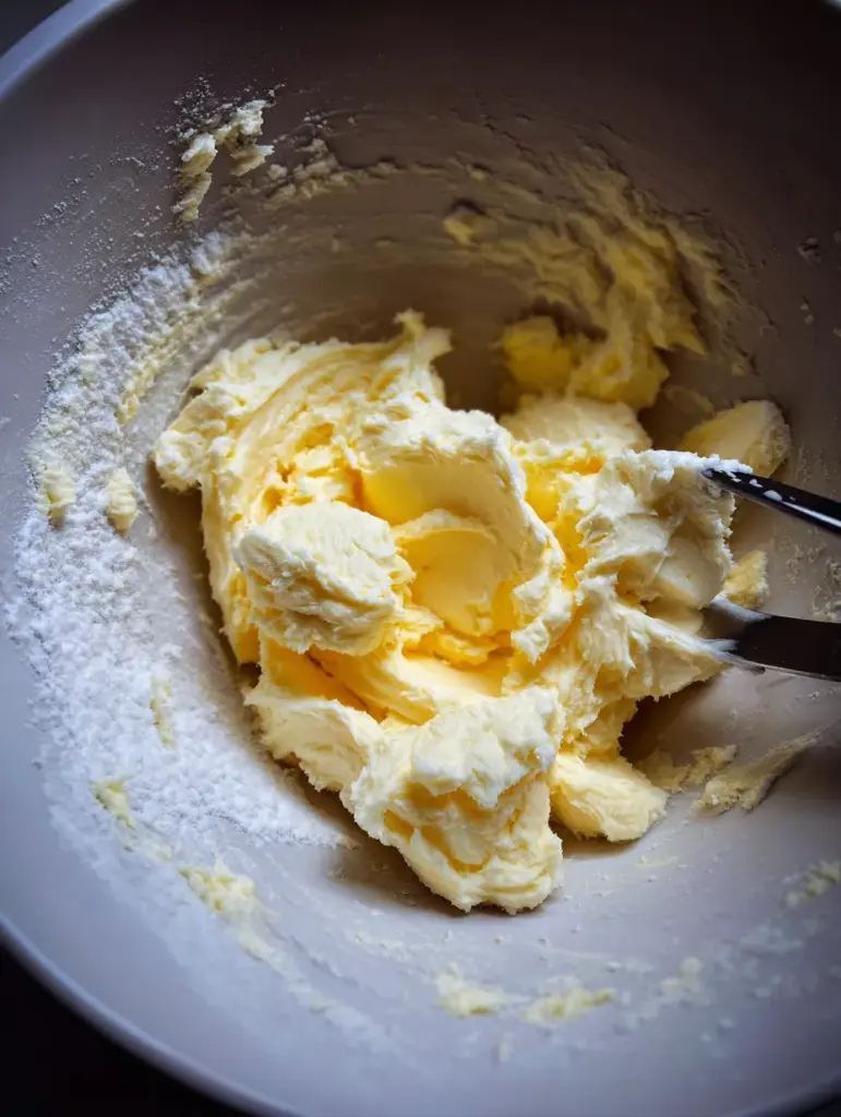 Cream the softened butter and granulated sugar for 2–3 minutes until pale and fluffy. 😊