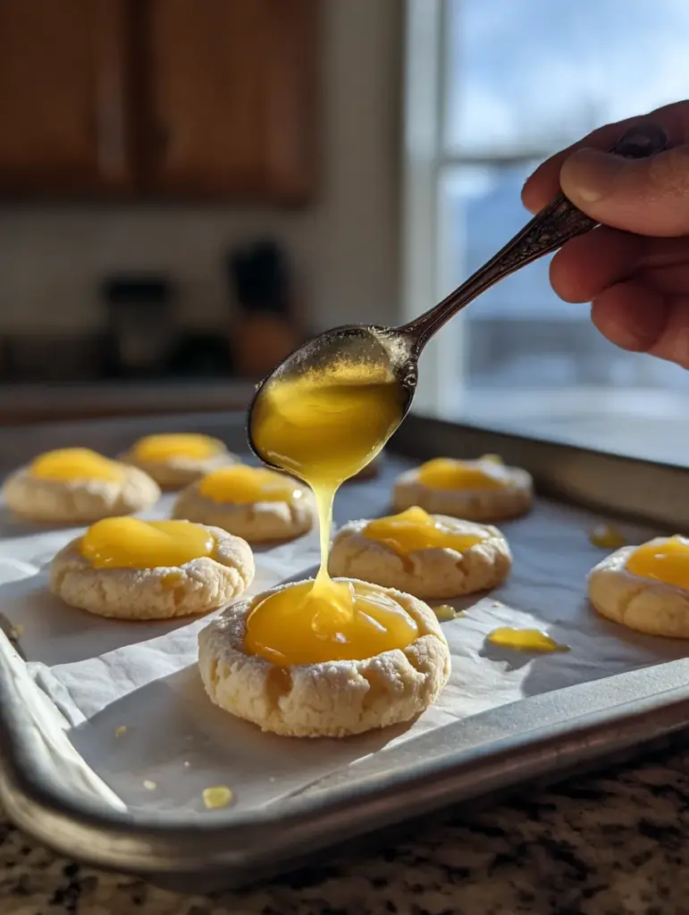- Underfilling with curd: Don’t skimp! The lemon curd is the star. A generous ½–1 tsp per cookie is ideal.