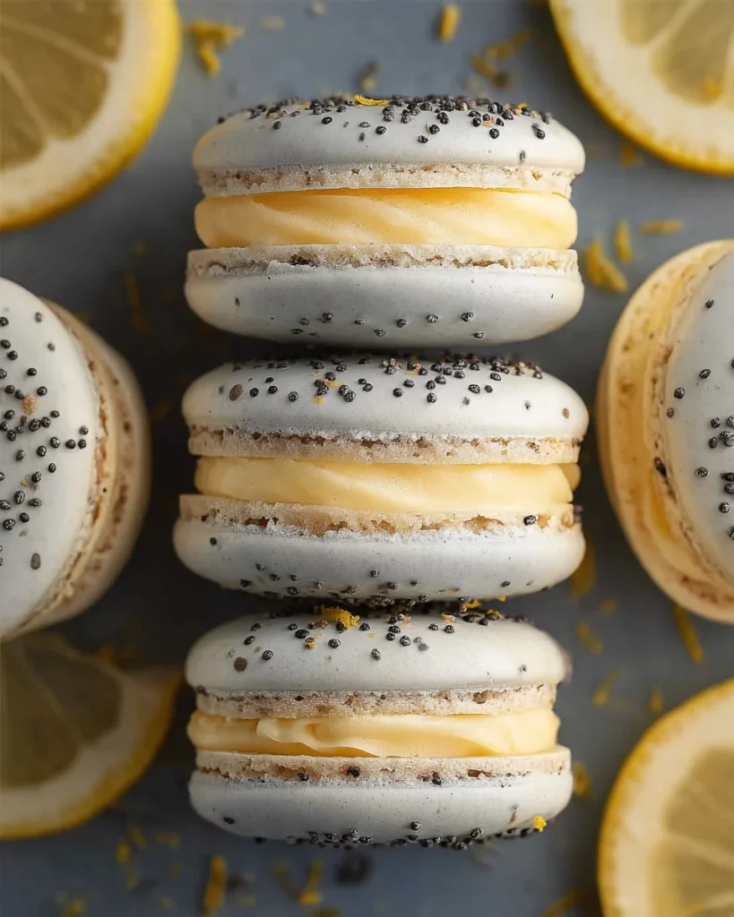 Lemon Poppy Seed Macarons are a delightful treat featuring zesty lemon flavor and a unique crunch from poppy seeds, perfect for any occasion.