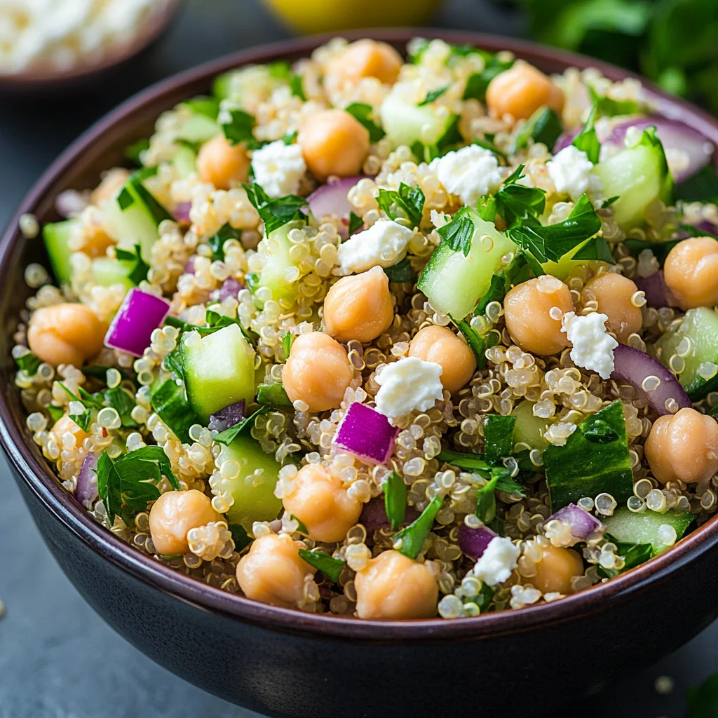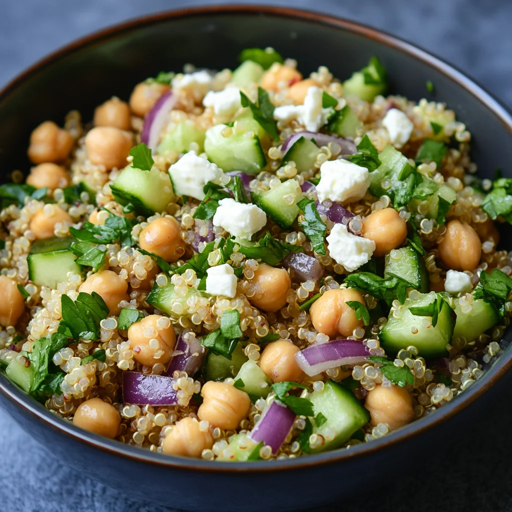 A refreshing and nutritious salad made with quinoa, chickpeas, and a zesty lemon dressing.