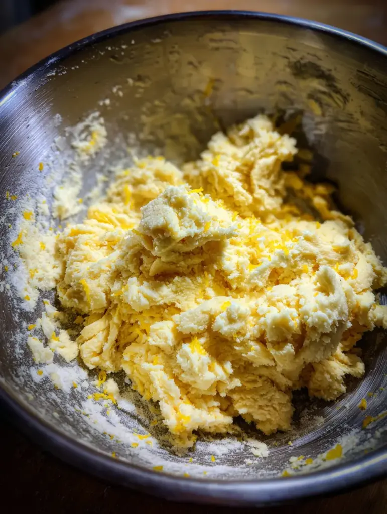Stir in your lemon zest and vanilla extract. Make sure they’re evenly distributed so every cookie gets a citrusy punch.