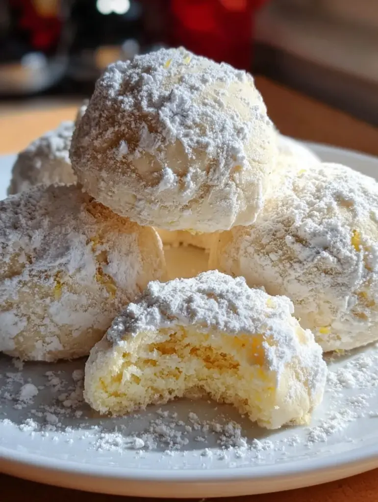 🍋❄️ Soft, buttery, and dusted like fresh snow! These delicate lemon snowball cookies are pale, tender, and irresistibly crumbly, bursting with bright citrus aroma in every bite. A timeless holiday favorite you’ll bake again and again! 🤍🍪