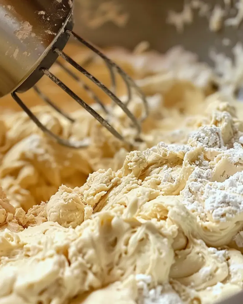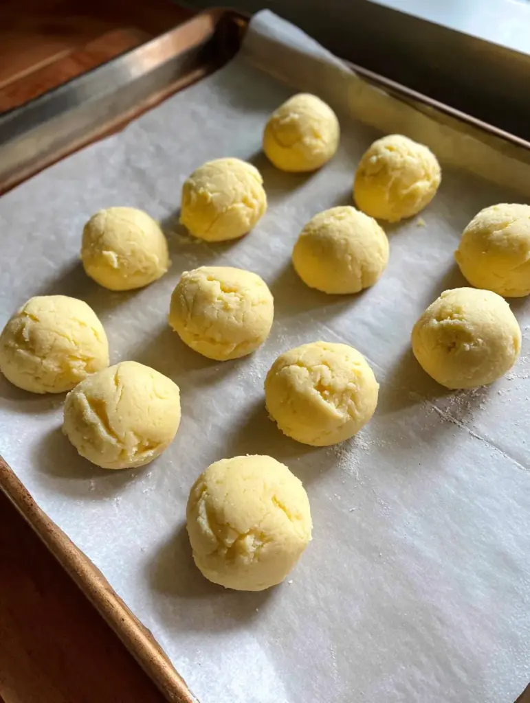 Using just one egg (not two) keeps the texture tender, not cakey. And we use a lower baking temperature (350°F) to avoid browning. That’s key — these cookies should stay pale and pillowy, not golden and crisp.