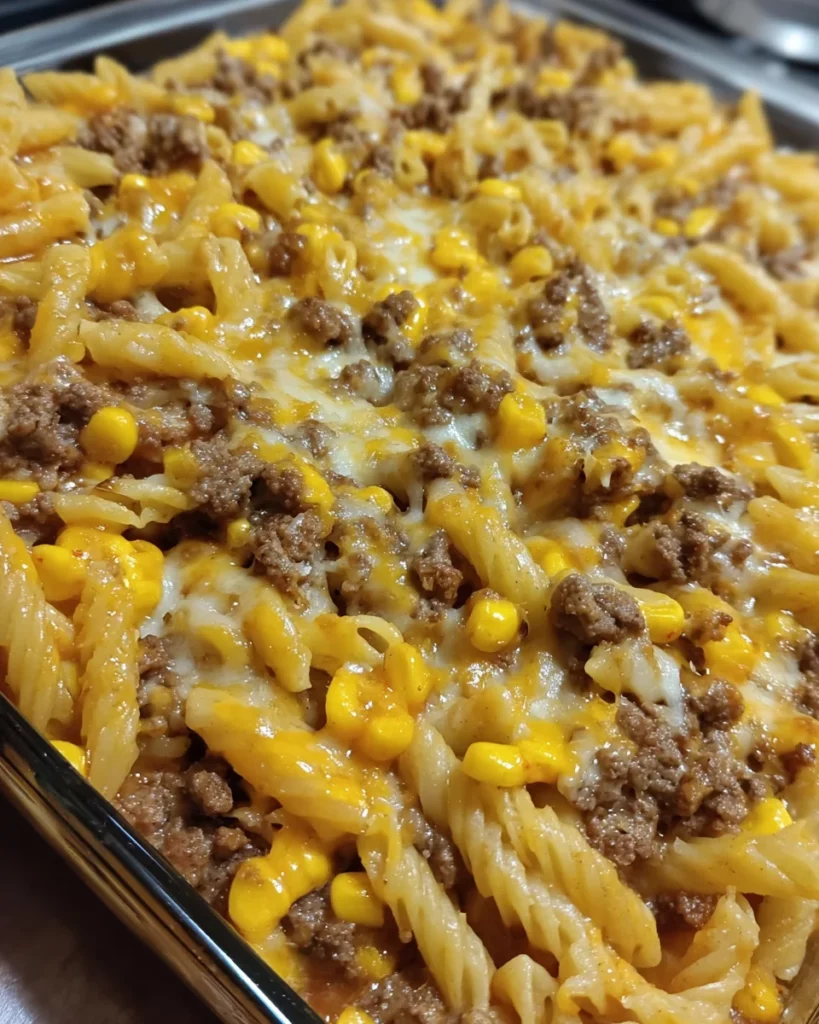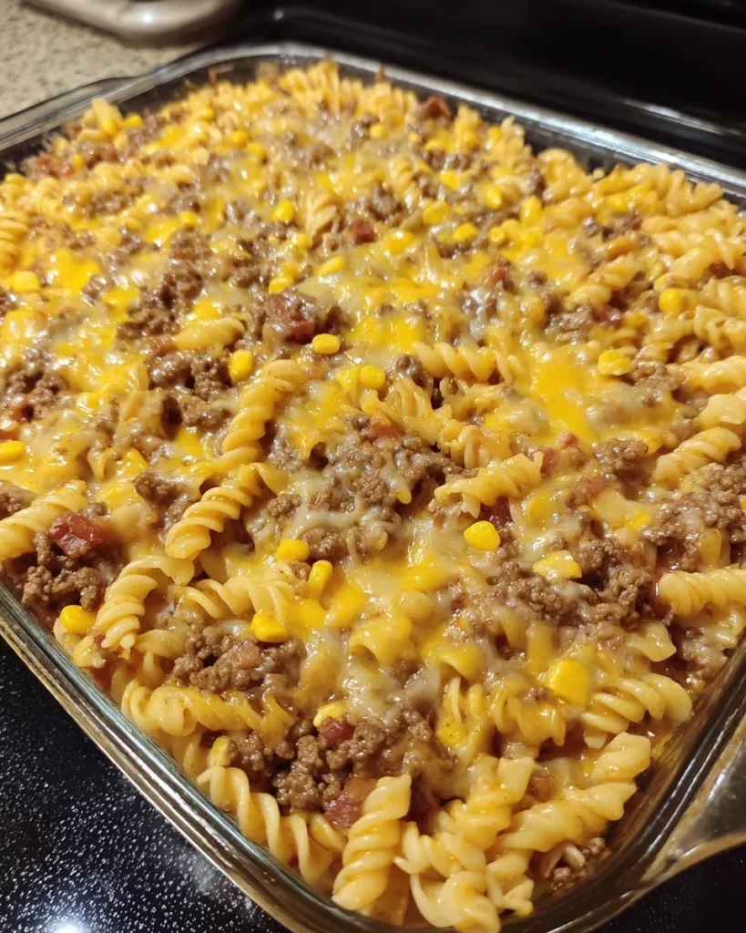 Imagine this: the juicy, savory flavor of seasoned ground beef, sweet pops of corn, smoky BBQ sauce, melty cheddar cheese, and pasta soaking up all that deliciousness. It’s cheesy, tangy, meaty, and slightly sweet in all the right ways. Each bite hits like a rodeo of flavor!