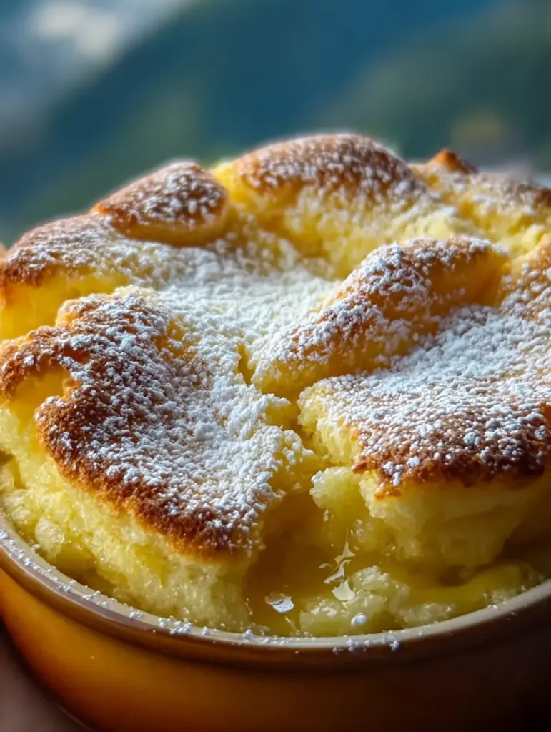 And yes — this final result matches the image exactly: a rustic, golden lemon cobbler with cracked cake peaks and a rich citrus center, dusted generously with powdered sugar and best served warm.