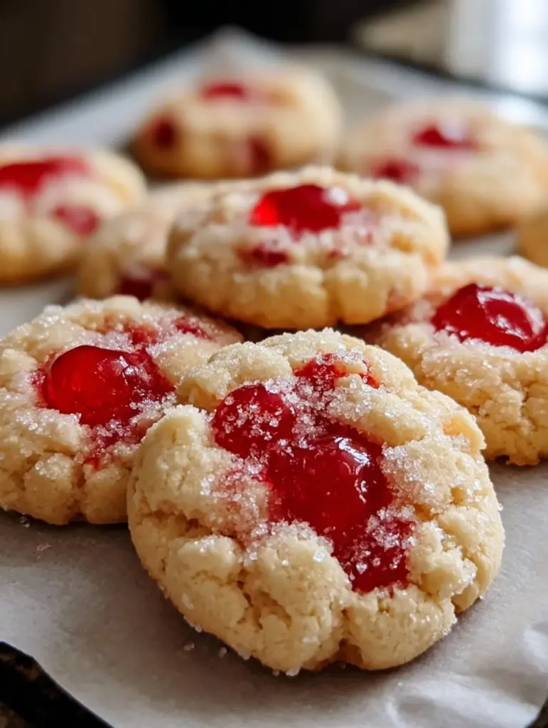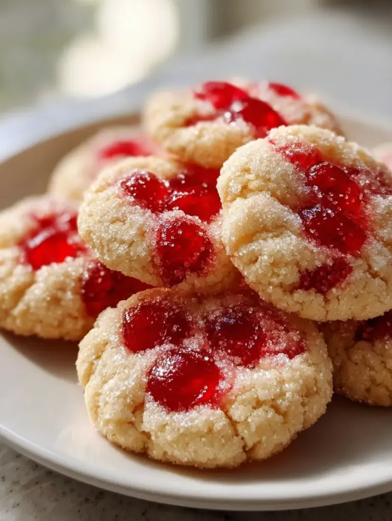 These cookies don’t just taste like the holidays—they look like them too. With their festive red centers, sparkly sugar crust, and buttery base, they’re like edible ornaments. People are drawn to them at cookie swaps or dessert tables because they’re simple yet eye-catching. And best of all? They taste even better than they look. The contrast between the rich, buttery dough and the bright cherry pop is what makes them unforgettable. Whether you’re baking for a crowd or just sneaking one off the tray (we’ve all done it), these cookies deliver joy in every bite.