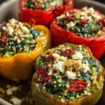 A delightful recipe for Mediterranean Spinach Feta Stuffed Peppers filled with fresh ingredients and bursting with flavor.