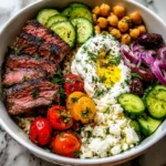 Creating this Mediterranean Steak Bowl Recipe brings joy to my kitchen and my family. It’s more than just a meal; it’s a celebration of flavors and fresh ingredients that lifts our spirits. Each layer tells a story—a tale of sunny Mediterranean markets, hearty family dinners, and shared laughter around the table. I love how it balances nourishment with pure delight. Whether you’re short on time or just looking for something healthy and delicious, this bowl is here for you. So, roll up your sleeves, gather your loved ones, and dig into this vibrant culinary adventure. Enjoy every bite!