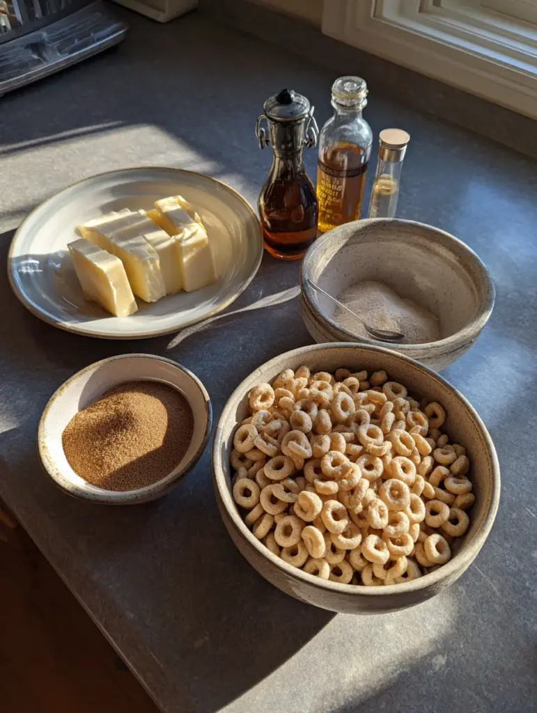 When done right, the Cheerios should look slightly glossy from the butter, with a visible grain of sugar clinging to every piece—just like the photo.