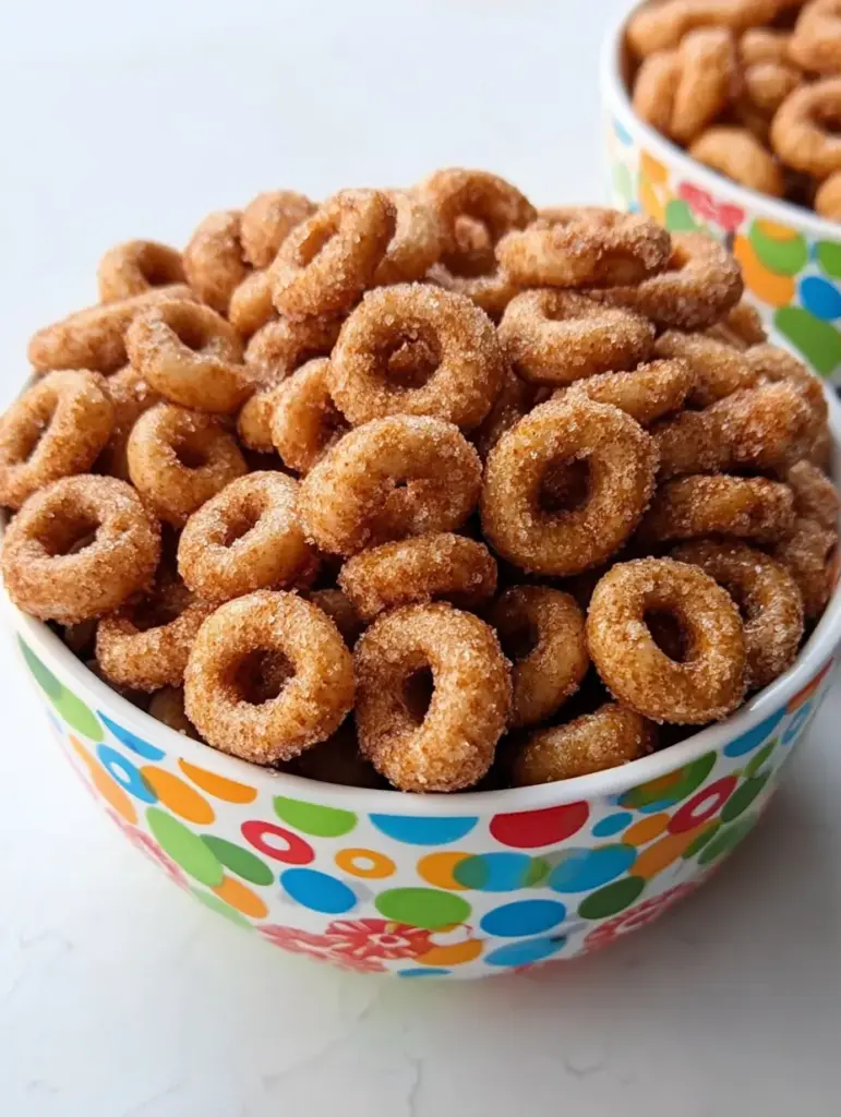 When Cheerios are gently warmed in butter, something magical happens. The cereal absorbs the fat just enough to soften slightly without losing its structure. Then, while still warm, it gets tossed in cinnamon sugar. The heat helps the sugar cling to every curve, settling into the little donut-shaped grooves that Cheerios already have.