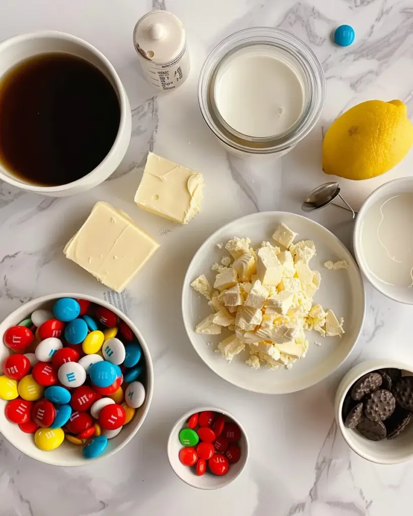 - Use regular-sized M&Ms, not mini ones. The image shows full-sized, glossy M&Ms, which create a beautiful pop of color and contrast perfectly with the creamy filling.