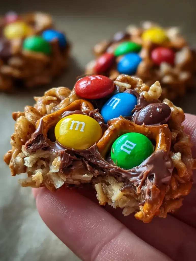 🍫🥨 Crunchy, chocolatey, and packed with sweet-salty goodness! These no-bake clusters combine crispy cereal, crunchy pretzels, silky melted chocolate, and colorful M&M’s for an irresistible treat that disappears fast at parties and holidays. 🎉✨