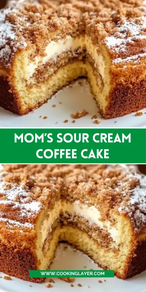 Mom’s Sour Cream Coffee Cake is more than just a recipe; it’s a heartwarming experience that creates cherished memories. Each slice is filled with love and the kind of nostalgia that brings families together. Whether it’s a cozy morning with coffee or a delightful afternoon gathering, this cake has a way of making life’s moments a bit sweeter. I truly believe that food made with passion can uplift spirits and connect us all. So grab your apron, invite the kids to help, and let the aroma of this cake fill your home with joy and warmth!