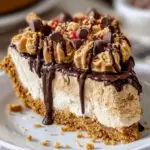 The aroma of warm butter and graham crackers draws you in before you ever slice into it; the nutty sweetness of peanut butter shows up next, bold but balanced, and a chocolate or peanut-butter drizzle adds that finishing edge of decadence. If you enjoy compact, no-fuss desserts that still read as “special,” you’ll love how this pie looks like a celebration but comes together with minimal drama. For a bite-sized companion idea, try pairing this pie with a batch of no-bake peanut butter cheesecake balls for a party platter that disappears fast.