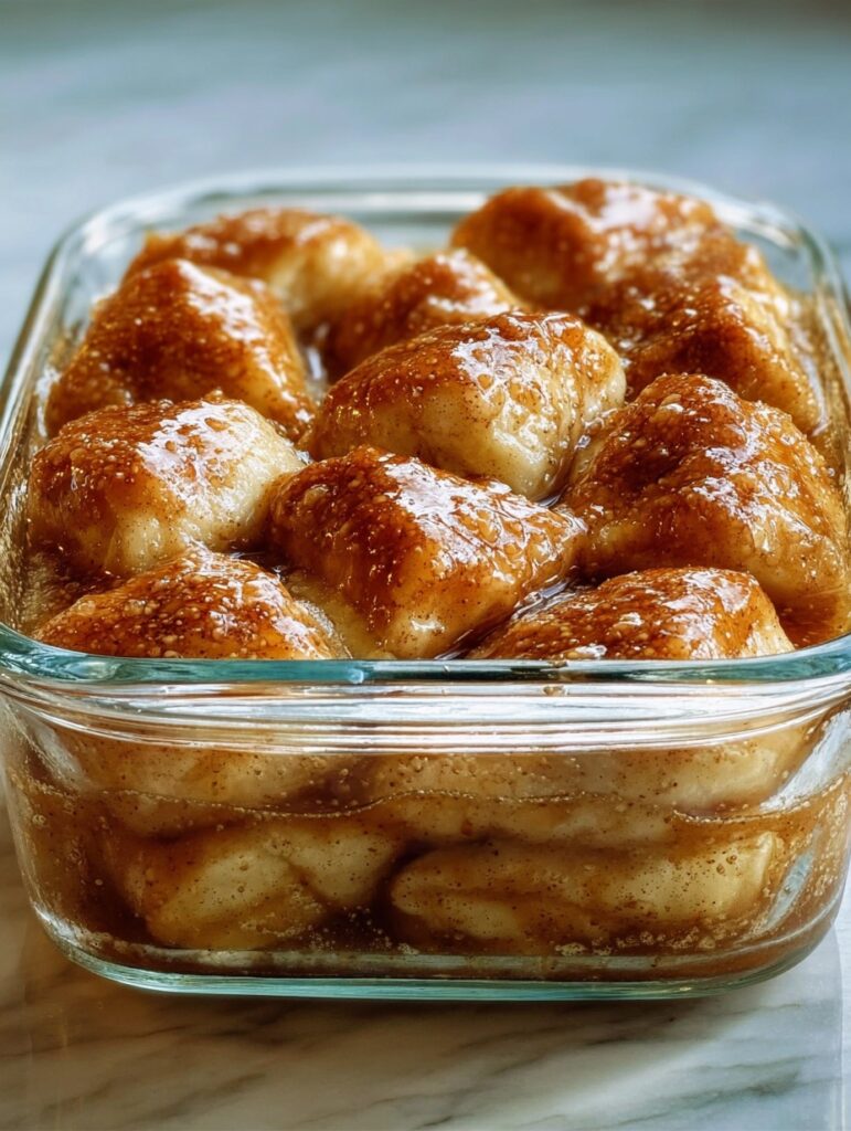 Melted butter mixed with sugar creates a luscious syrup base. The sugar caramelizes in the oven, coating each dumpling in sticky, golden sweetness.
