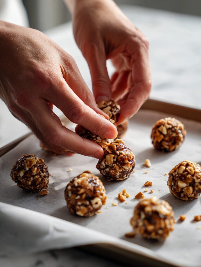 Scoop and roll the mixture into small bite-sized balls (about 1 inch each). Place them on a baking sheet lined with parchment paper.
