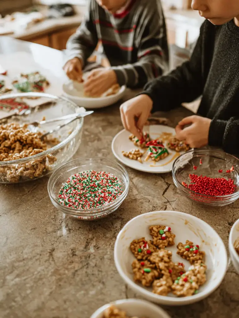 Absolutely! Kids can help mix the cereal, form the clusters, drizzle the icing, and add sprinkles. It’s a super fun, hands-on holiday kitchen activity.