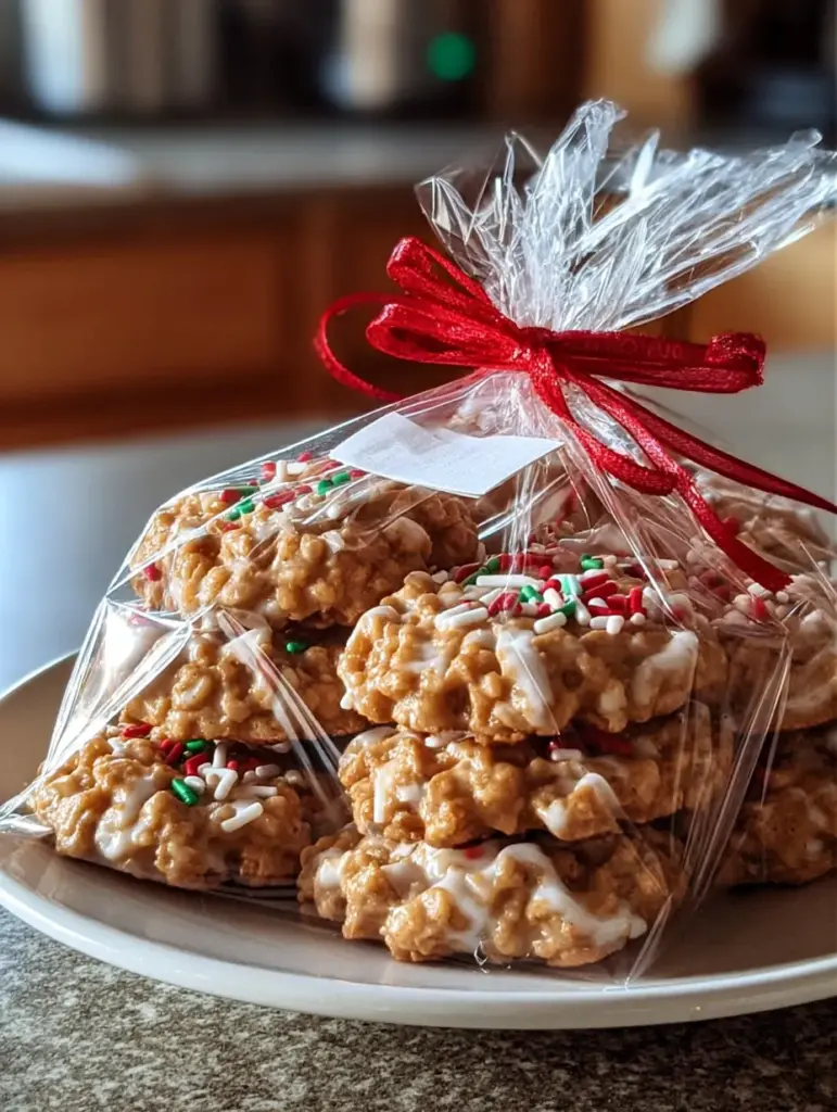 There’s something magical about the holidays — the lights, the music, the cozy vibes — and of course, the cookies! But let’s be honest: sometimes, you don’t want to deal with the oven. That’s where these No-Bake Christmas Crunch Cookies come in. They’re chewy, caramel-y, peanut buttery, and perfectly dressed in holiday sprinkles with a glossy white icing that gives them a snow-dusted look.