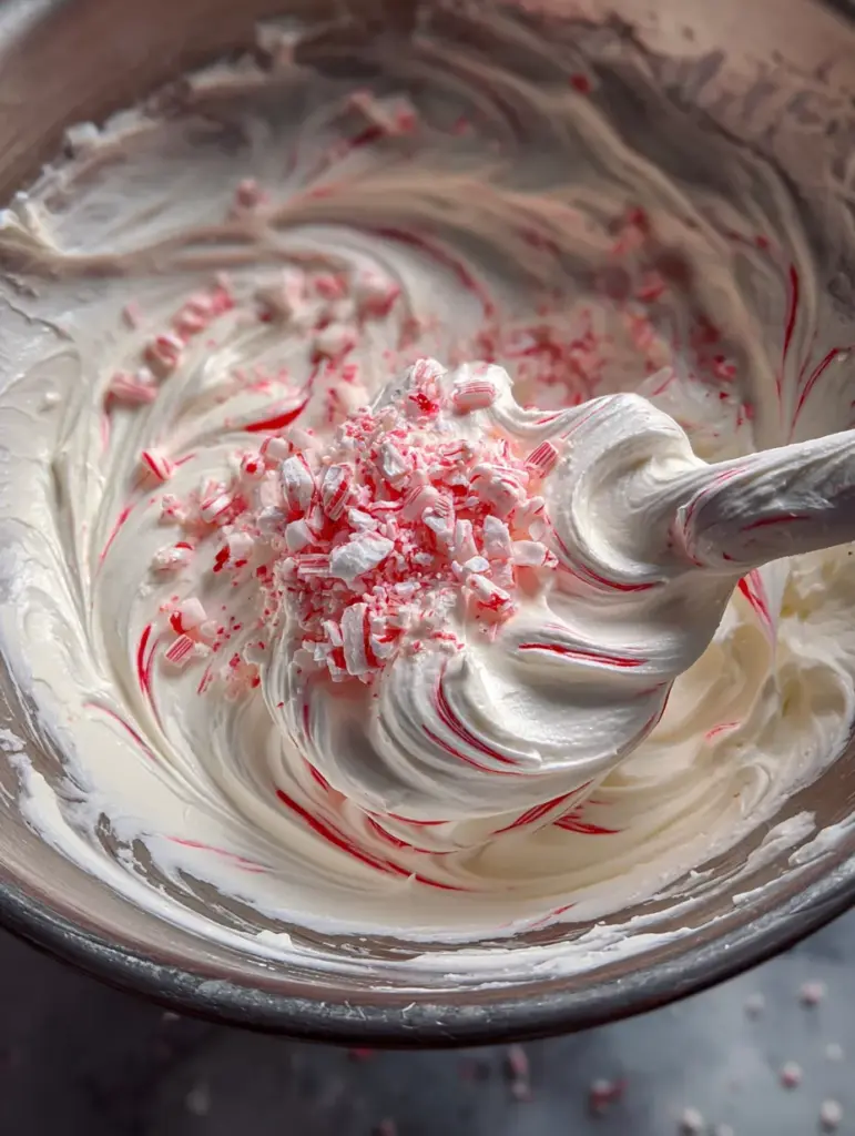 ⏱️ Duration: 3 minutesGently fold in Cool Whip, followed by crushed candy canes. ❄️