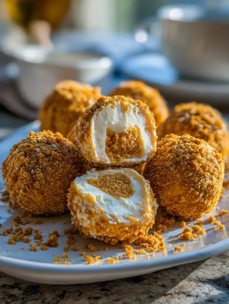 Just look at that golden crumb in the photo — soft pumpkin-spiced filling hugged by a crunchy graham coating, and that creamy cheesecake heart that practically melts in your mouth. These little bites are like pumpkin pie, cheesecake, and cookie dough rolled into one delicious ball.
