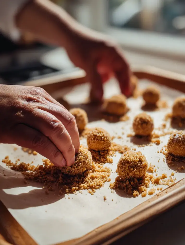 ❄️ Chill (30 minutes): Refrigerate or freeze the balls until firm enough to handle.