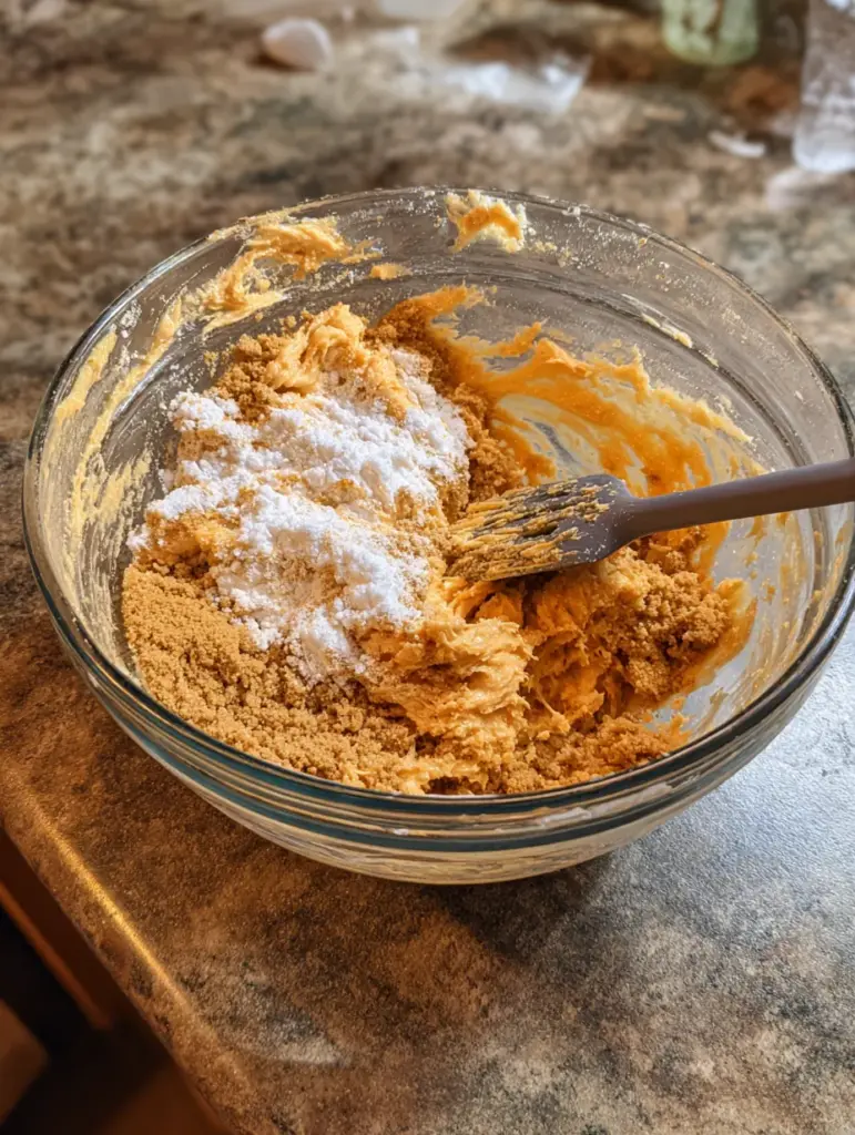 Once combined, add the powdered sugar, pumpkin pie spice, and vanilla extract. Stir until fully incorporated. The mixture should be creamy but slightly thick.