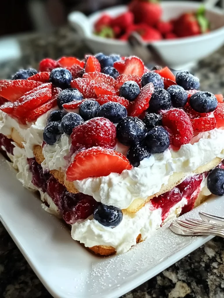 A refreshing no-bake dessert featuring layers of creamy mascarpone cheese, fresh berries, and graham crackers.