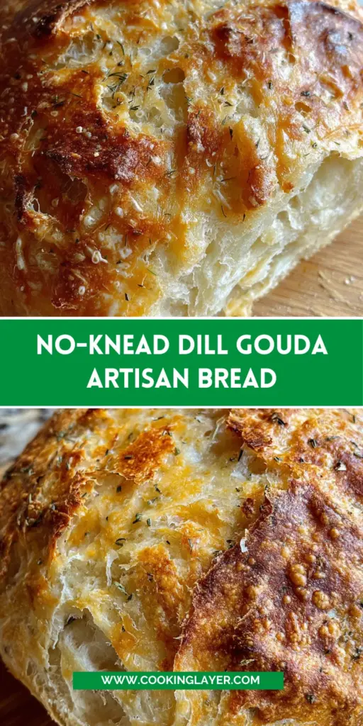 Baking my No-Knead Dill Gouda Artisan Bread has become a cherished ritual. It fills my home with warmth, and the fragrant aroma invites my family to gather around the table. Each slice is a delightful blend of comforting flavors, making every meal special. The simplicity of this recipe means I can enjoy quality time with my loved ones while the bread does its magic. Whether it’s a cozy dinner or a festive gathering, this artisan bread is sure to impress. Give it a try; I promise you’ll find joy in the process and, even more, in the delicious results!