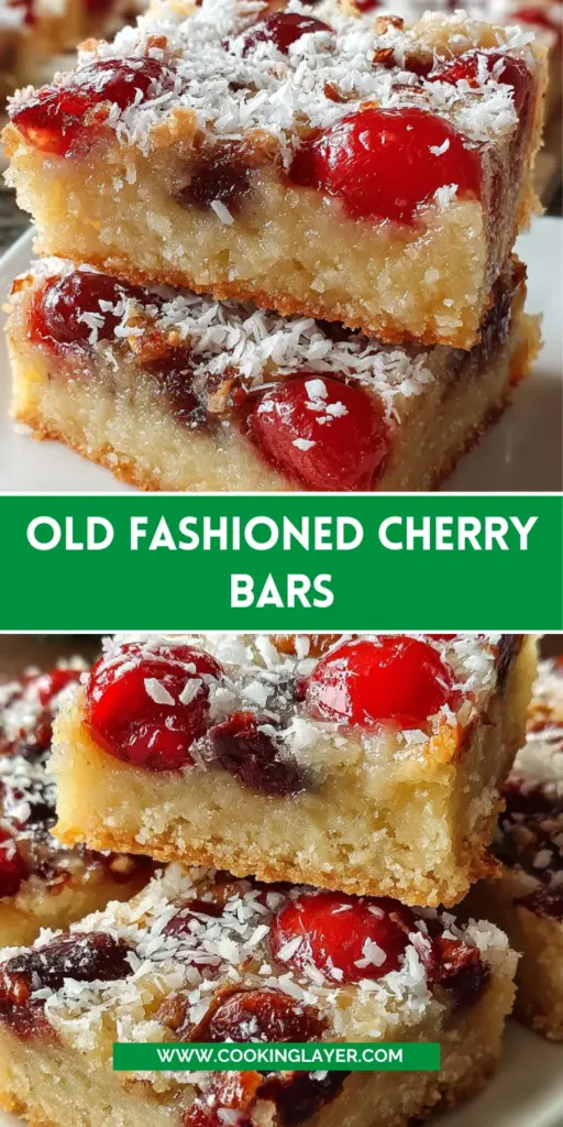 These Old Fashioned Cherry Bars are a total winner! They combine ease and flavor in one delicious package. You can whip them up quickly, perfect for those busy weekdays or unexpected guests. Plus, the combination of cherry and coconut offers a taste of nostalgia that transports you back to carefree days. Everyone will be asking for the recipe, making you the star of your own kitchen!