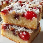 Old Fashioned Cherry Bars are a delightful retro treat featuring a buttery base topped with cherries, nuts, and coconut.
