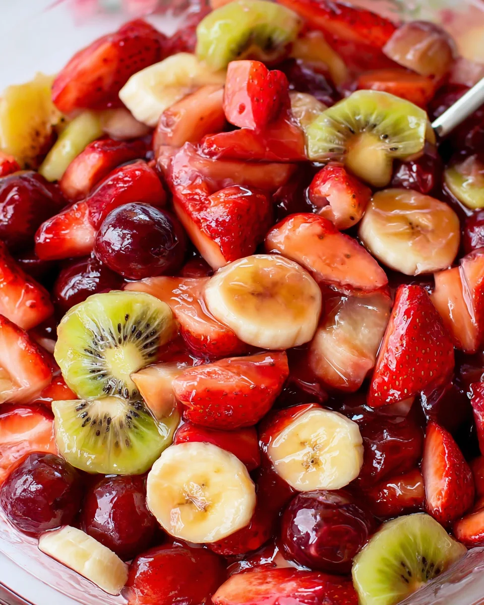 A classic and refreshing fruit salad combining a variety of delicious fruits with a sweet cherry pie filling.