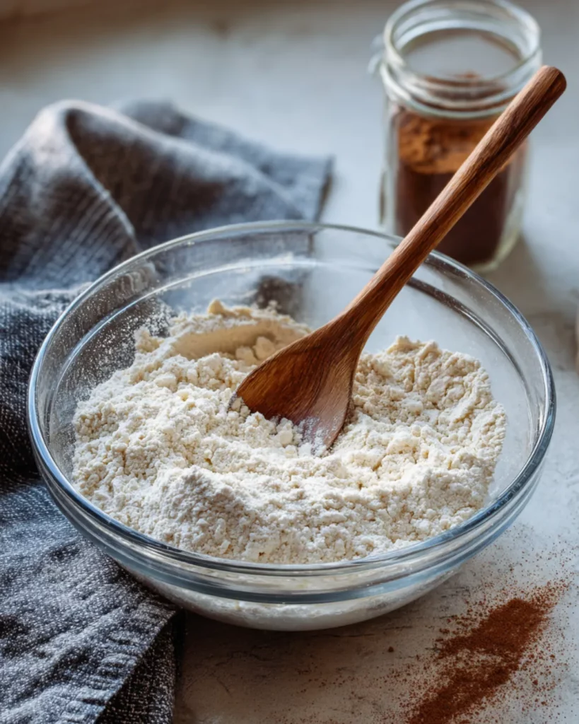 Start by combining 1 cup of Bisquick mix, 1 cup of milk, 1/2 teaspoon nutmeg, 1/2 teaspoon cinnamon, and 1 cup of sugar in a mixing bowl. Stir until smooth. The batter should be light, sweet, and fragrant with spices. Don’t worry about overmixing—it doesn’t need to be perfect. Think of it as a homestyle batter, just like Grandma would have made.