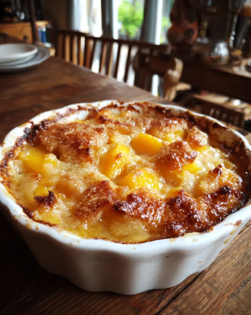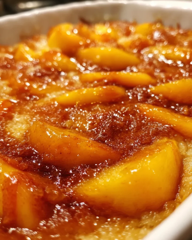 While the classic recipe is perfect just the way it is, you can always play around with flavors to make it your own. A splash of vanilla extract or almond extract in the batter adds extra depth. If you like a little tang, add a teaspoon of lemon juice to the peaches before layering them in. For an extra indulgence, sprinkle a little brown sugar over the top before baking—it caramelizes beautifully in the oven.