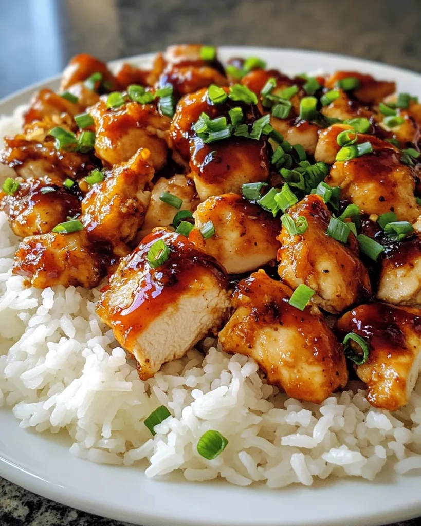 A delicious one-pan dish featuring bold honey BBQ chicken served over rice, perfect for a quick and easy dinner.