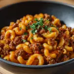 One Pot Beefaroni is an easy, comforting dish that combines ground beef, pasta, and a flavorful tomato sauce, all cooked in one pot for convenience.
