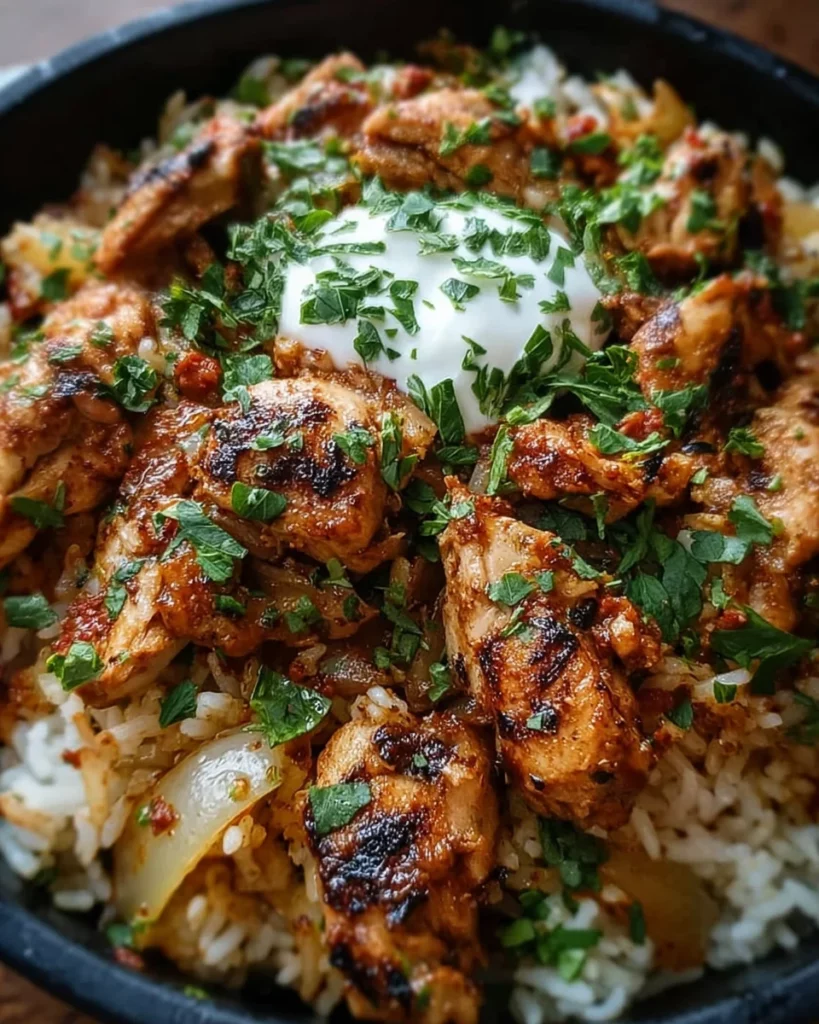 One Pot Shawarma Chicken And Rice is a flavorful dish that combines tender marinated chicken thighs with aromatic basmati rice, infused with spices and cooked in one pot for an easy and satisfying meal.